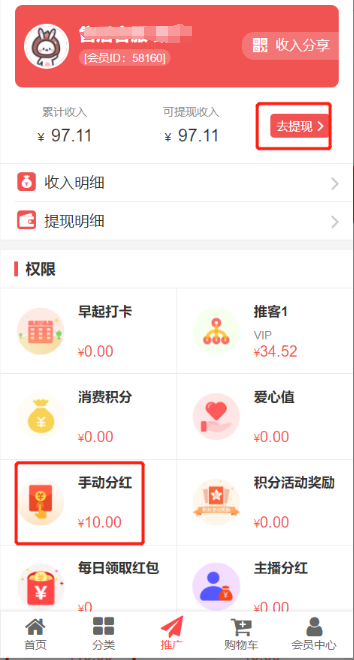 3、手动分红发放成功了,分红明细支持查看所有手动分红明细,查看每一次分红具体明细分红金额。