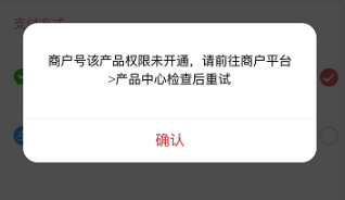 十二、商户号该产品权限未开通,请前往商户平台>产品中心检查后重试